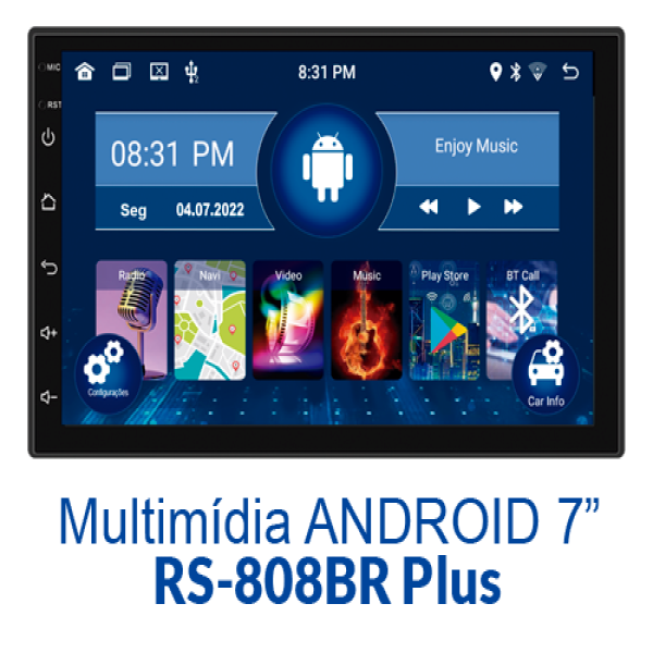 MP5 MULTIMIDIA ROADSTAR 7 POLEGADAS ANDROID GPS WIFI RS808BR 1GB E 16GB FLASH