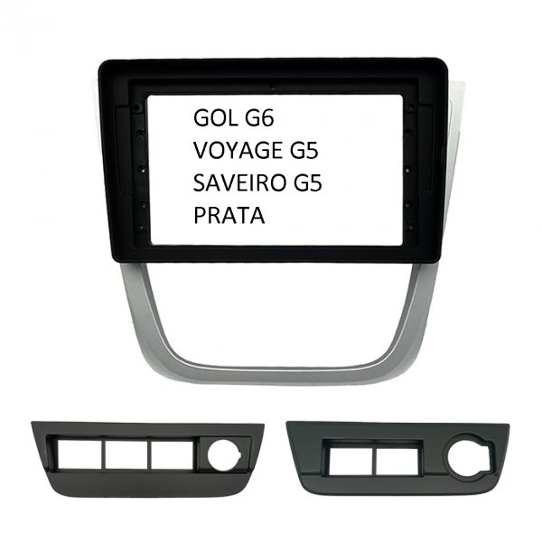 MOLDURA 2 DIN PRATA GOL G5 SAVEIRO G5 VOYAGE G5 9 POLEGADAS