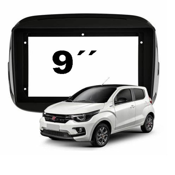MOLDURA 2 DIN 9 POLEGADAS FIAT MOBI 16 A 22 PRETO FOSCO CORTAR PAINEL