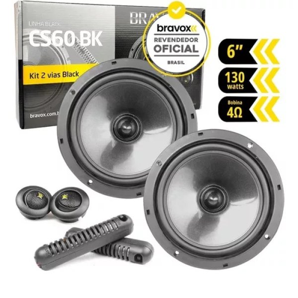 KIT 2 VIAS BRAVOX CS60BK 6 130WRMS 6 POLEGADAS