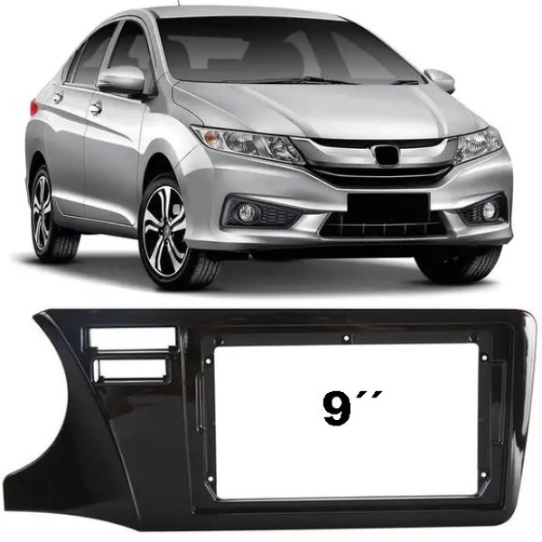 MOLDURA 2 DIN HONDA CITY 14 A 21 PRETO 9 POLEGADAS