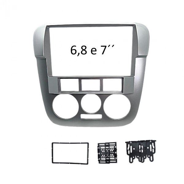 MOLDURA 6.8" E 7" VW GOL, SAVEIRO E PARATI G4 - BOTOES DESLOCADOS PRATA