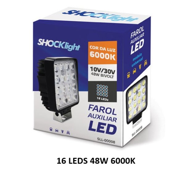 FAROL MILHA 16 LED 48WW QUADRADO 12V 24V 4200LM 6000K BRANCO SHOCKLIGHT