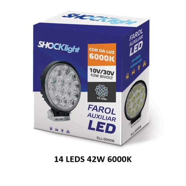 FAROL MILHA 14 LED 42WW REDONDO 12V 24V 3780LM 6000K BRANCO SHOCKLIGHT