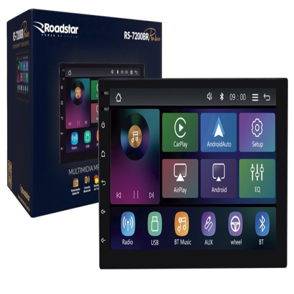 MULTIMIDIA ROADSTAR RS7200BR PRO LINE 7 POLEGADAS CARPLAY ANDROID AUTO ESPELHAMENTO SEM FIO MIRROLINK CABO USB PENDRIVE ATE32GB