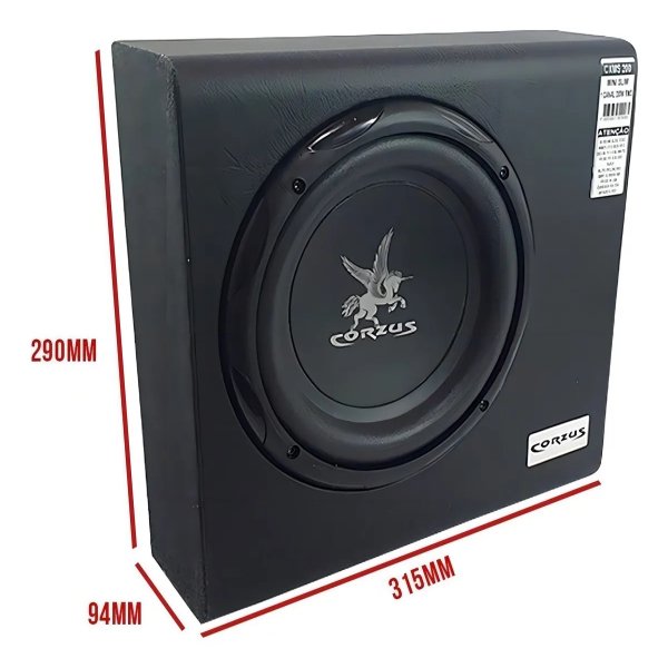 CAIXA SLIM ATIVA AMPLIFICADA 8 POLEGADAS 200WRMS CORZUS MINI SLIM CXS200 29CMX31,5CMX9,5CM